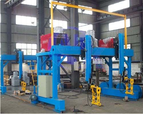 There is also frequency timing equipped as gantry frame, with welding torches at each 2 groups of guiding column on the beam.
