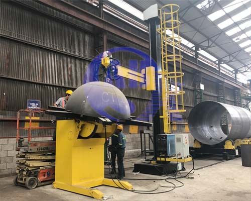 This column boom manipulator can reach both of the inside of small internal diameters and the outside of big diameters in order to weld circumferential joints as well as longitudinal joints.